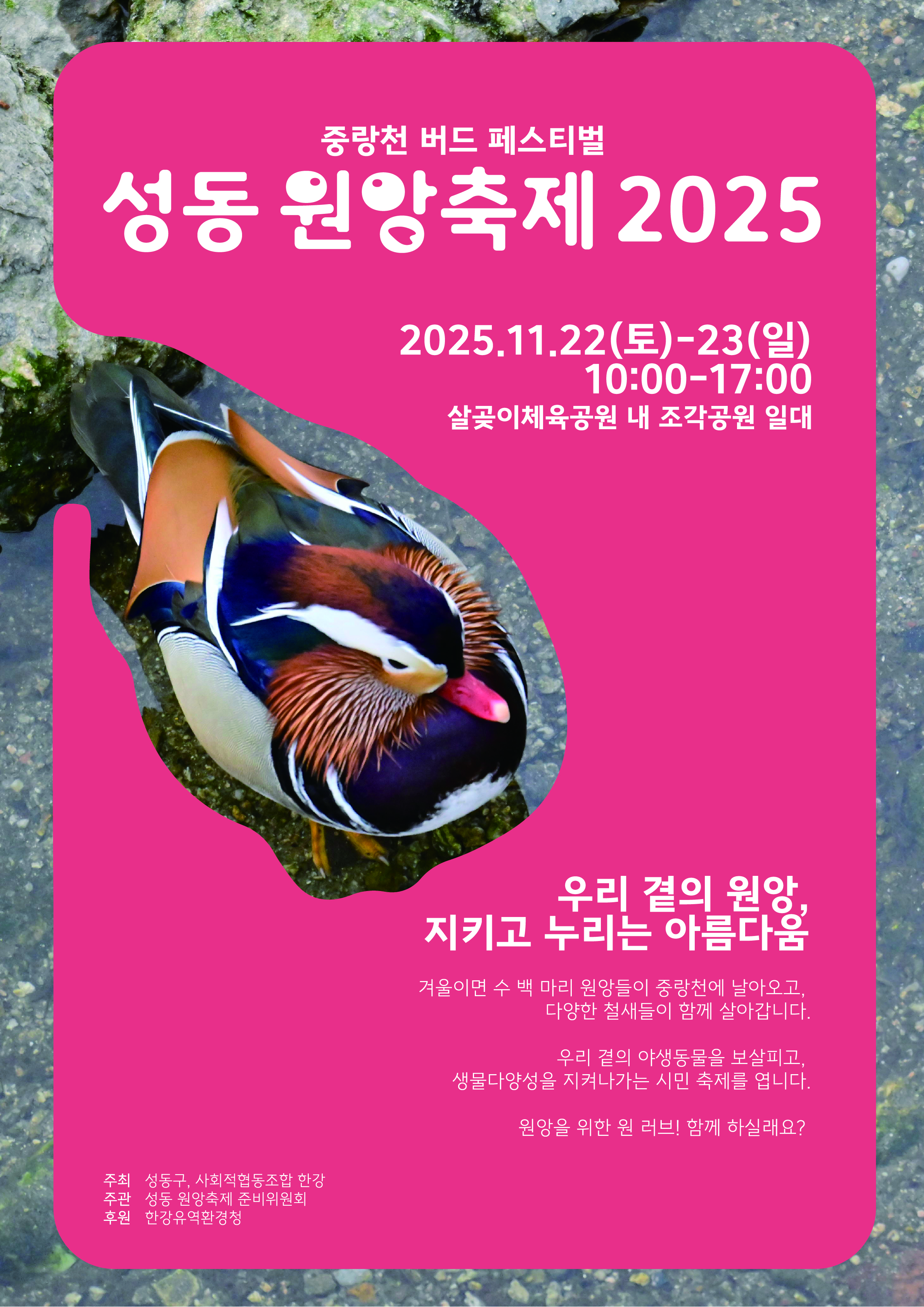 한강은 저 원앙들을 지켜주기 위한 일들을 하고 있습니다. 새들의 쉼터를 만들고 거친 풀들을 정리해서 원앙식당도 준비했습니다. 이제 11월이면 원앙축제도 펼쳐질 거예요. 우리 곁의 원앙에게 당신은 어떤 마음을 내어주시겠습니까? 강가에서 기다리고 있겠습니다.