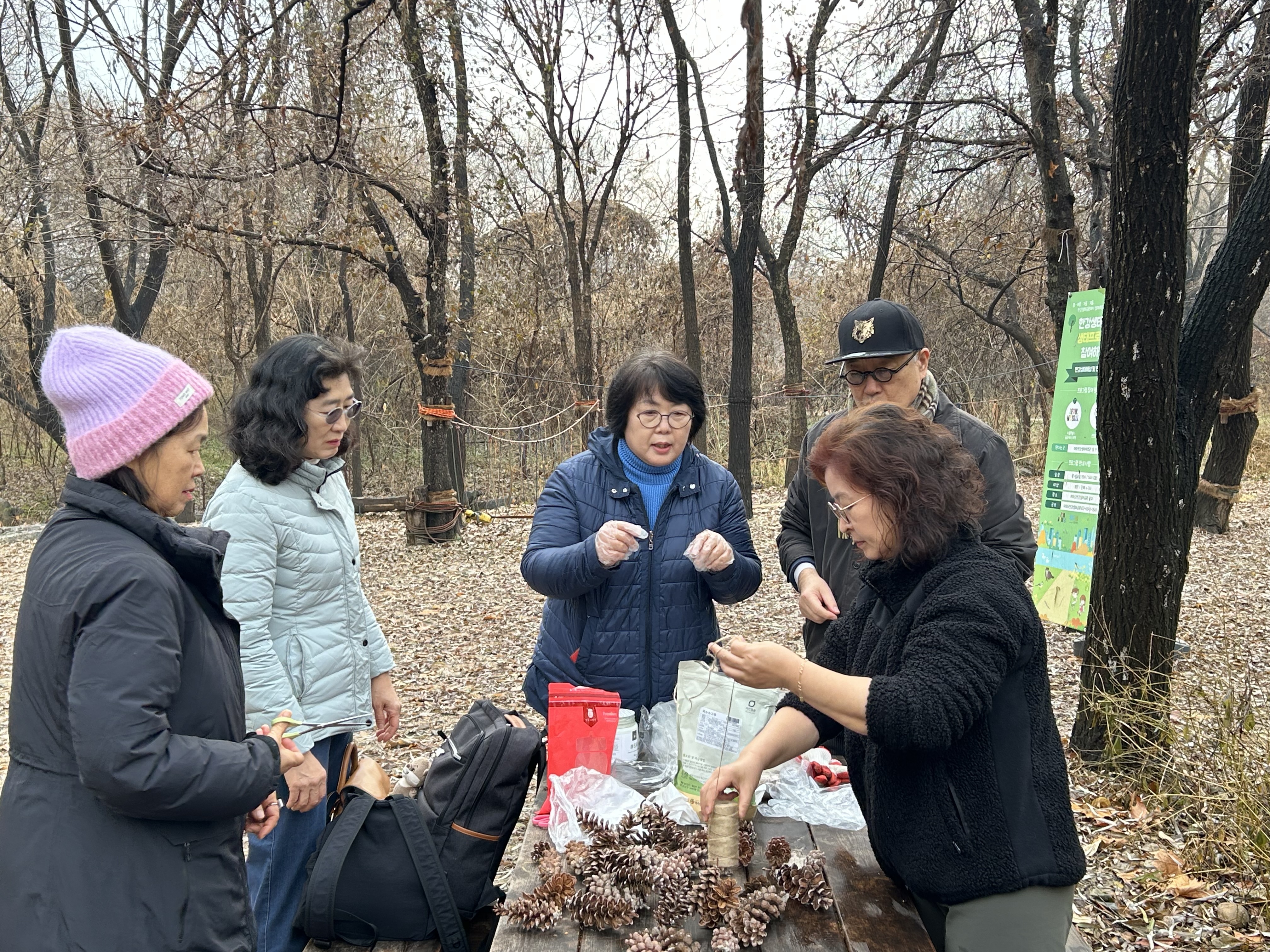 아침나절에 비가 내리고 공기는 더 냉랭합니다. 아랑곳하지 않는 마음으로 명숙은 샛강숲으로 갑니다. 며칠 전에 미리 사둔 견과류, 옥수수 가루, 돼지 기름 같은 것들을 가방에 한가득 담아 걸어갑니다. 틈이 나는 대로 동네 공원에 가서 주워 온 솔방울도 몇 개 넣었습니다. 이 모든 것들은 새들을 위한 밥상을 차리기 위해서입니다.