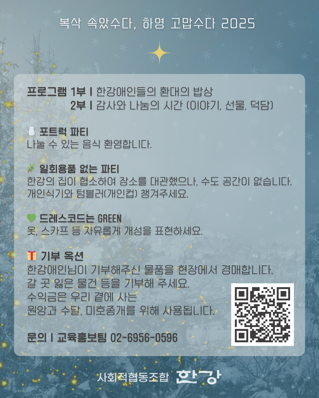 후원 계좌: 사회적협동조합 한강, 우리은행 1005-903-602443